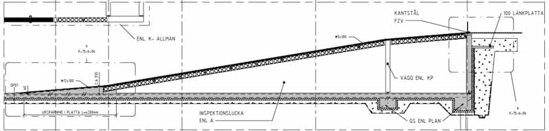 Arbetet omfattade framtagning av konstruktionsritningar för bottenplatta, kantbalkar och eventuella pålningslösningar samt armeringsritningar, grundsektioner och detaljlösningar för anslutningar mot bärande stomme.