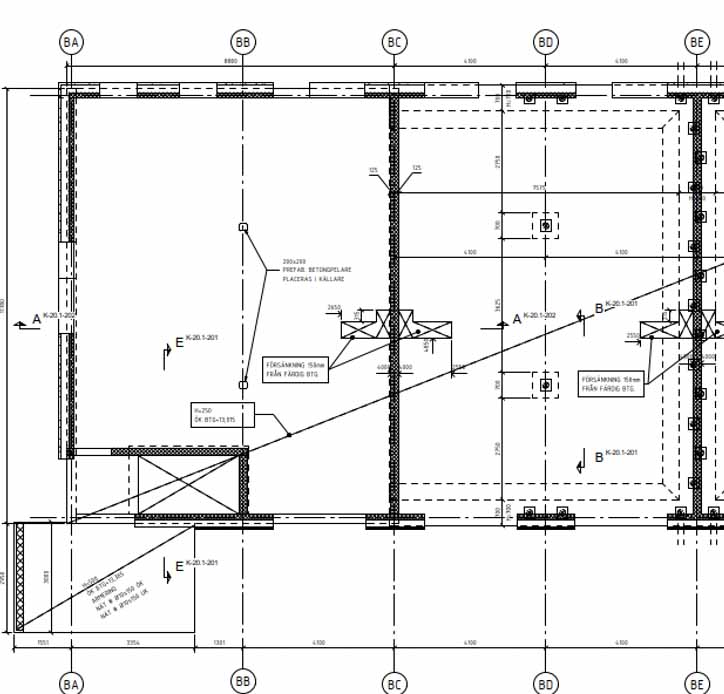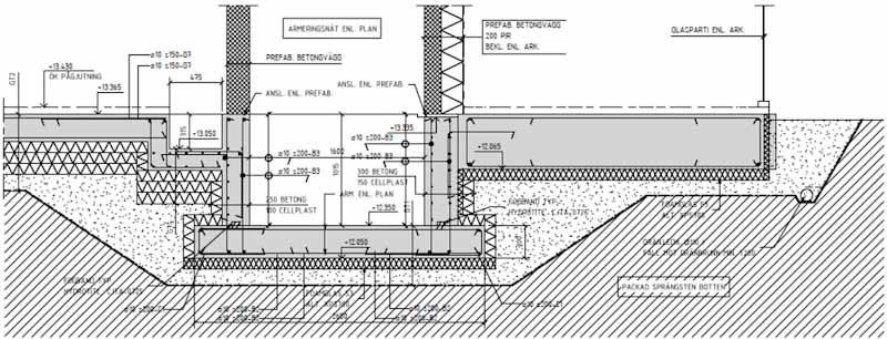 Vi har projekterat grunden med konstruktionshandlingar till grundläggningen.